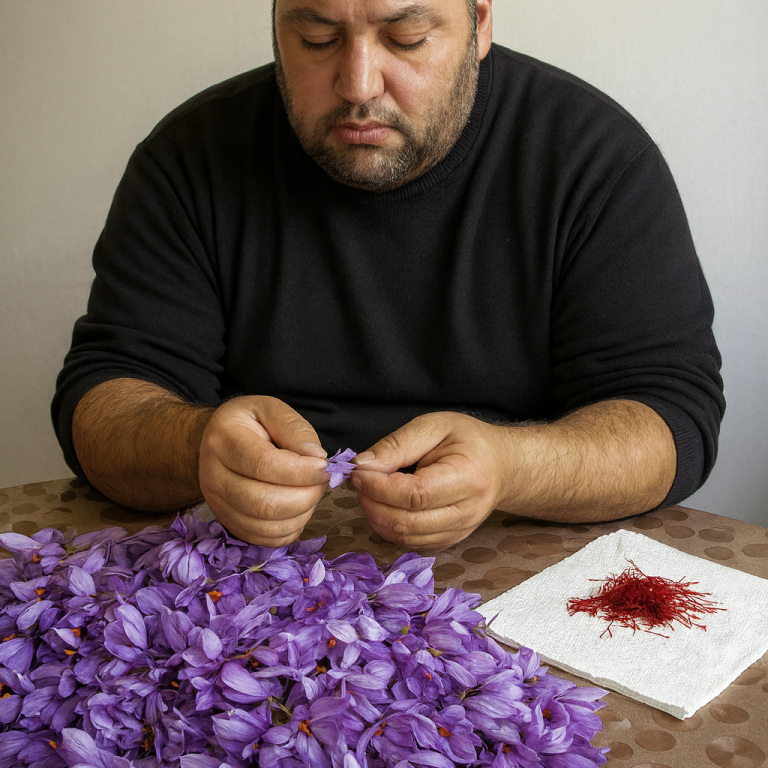 Zafferano di Montegiorgio, con colori vividi e sapore superiore, coltivato e raccolto con cura artigianale.